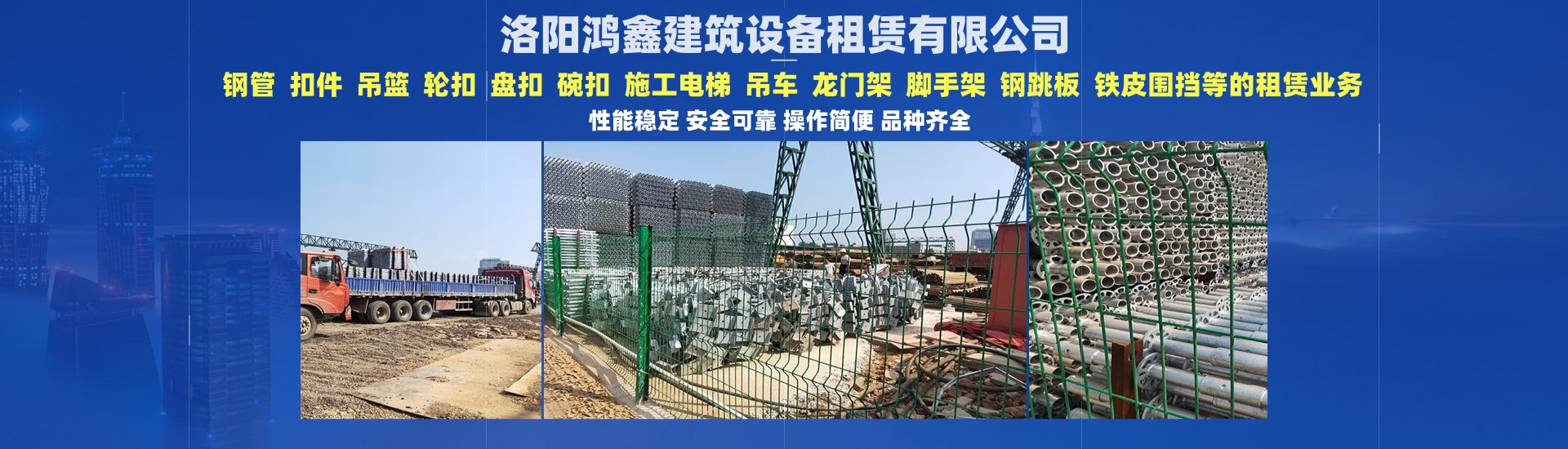 洛陽鴻鑫建筑設備租賃有限公司專業從事:鋼管.扣件. 吊籃.輪扣.盤扣.碗扣.施工電梯.吊車.龍門架.腳手架,鋼跳板、鐵皮...